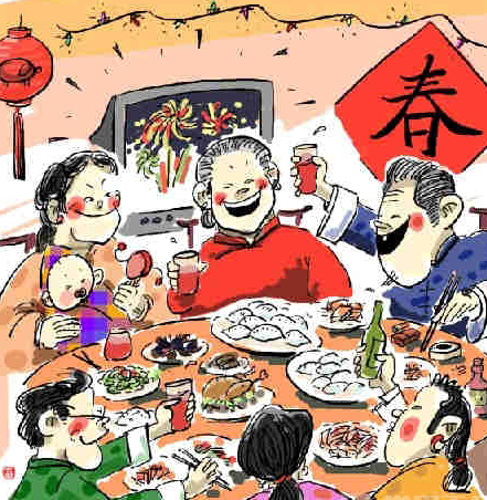 民间传说三十夜晚,只要有恒心,一定会等到老天爷的闺女打开南天门向人间赐福的时候,如果早睡就没有福了。人们怀着美好的愿望,每年腊月三十夜,全家一起聊天不休,趁此享受天伦这乐。主妇也要摆好香案供上祭品,通夜秉烛,上香5遍。是夜禁大声喧哗,以免惊动神灵;禁开箱柜,以免跑财;禁照镜子,拿木梳,以免见"鬼";禁见刀剪,以免破家;禁扫地,以免金银外流;禁倒尿盆,以免污秽神灵。三十晚上要丢剩饭,叫隔年饭。初一早起也要丢剩饭,以兆吉庆有余。