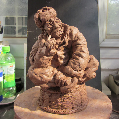 ·杨惠民在精心制作泥塑作品