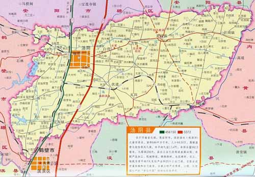 【位置现状】汤阴县位于华北平原与太行山脉交汇的山前地带,地处北纬35°45′~36°01′,东经114°13′~114°42′。这里自古以来就是南北交通的要冲。京广铁路、107国道公路和京珠高速公路、石武高铁纵贯县境,汤濮地方铁路,壶台省道公路横跨东西,使这里的交通优势更加凸现。县城南与省会郑州相距180公里,北去20公里即为豫北名城安阳。北与安阳县和安阳市文峰区、龙安区接壤,东至卫河与内黄县隔河相望,东南至五陵镇与内黄、浚县交界,南至大盖族西南至龙堂西北至王佐与鹤壁市交界。总面积645.86平方公里。