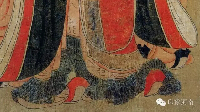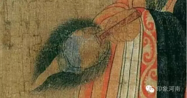 骄奢淫逸的亡国之君陈后主叔宝,阎立本则以袖掩口的精神萎靡之态来表现他的荒淫无道和软弱无能。
