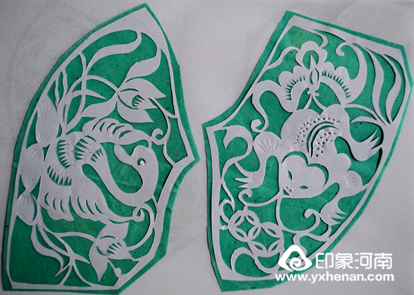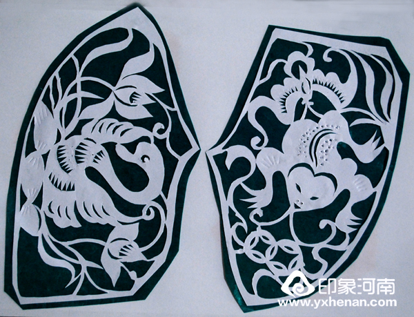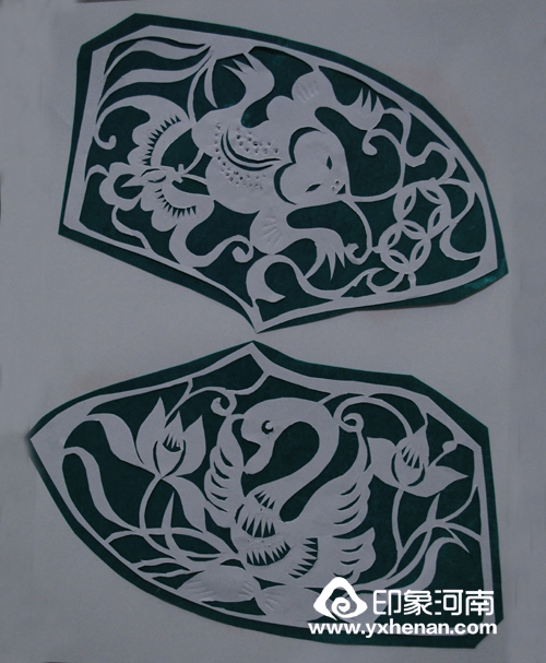 《蟾与鹅传说》 的剪纸作品,是程玉霞2012年创作的“鞋花”系列剪纸,以古朴含蓄的手法表现了蟾与鹅的戏剧性。