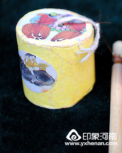 中国古代崇拜五色,认为五色是最吉祥的颜色,共分红、黄、蓝、黑、紫五色,安阳吉祥鼓正是用五色纸的绚丽色彩对鼓体进行了装饰,一直延续至今。