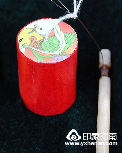中国古代崇拜五色,认为五色是最吉祥的颜色,共分红、黄、蓝、黑、紫五色,安阳吉祥鼓正是用五色纸的绚丽色彩对鼓体进行了装饰,一直延续至今。