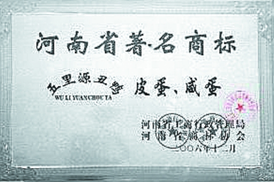 修武县五里源丑鸭松花蛋专业合作社成立于2006年8月,现有社员170人,总占地面积80亩,建筑面积3000平方米,具有年产5000万枚各类松花蛋的生产能力。主要产品有:“丑鸭”牌优质松花蛋、糖蜜松花蛋、工艺画松花蛋、桂花松花蛋、松花香肠、咸鸭蛋(生)、真空包装咸鸭蛋、五香泡蛋、16天鸡胚营养蛋、五香鹌鹑蛋等20多个品种。目前,该合作社产品已被国家权威部门认定为全国绿色健康放心食品,松花蛋酱已取得国家专利并多次荣获省、市、县科技成果奖。全部产品经卫生部门检验为“放心食品”,旅游部门指定为旅游产品。2006年12月,该合作社双喜临门。一喜“丑鸭”牌商标荣获中国“著名商标”,二喜传统松花蛋生产加工工艺被列为全省本行业唯一的非物质文化遗产及保护单位。该合作社所生产的各类蛋品已畅销北京、广东、辽宁、河北、山西等地,并与双汇集团签订了500吨蛋品的供货合同,市场前景十分看好。