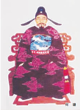 殿试这天,金銮殿上,应试的人由于思想紧张,一个个斯文拘谨,呆若木鸡。张秀文自以为成竹在胸,自然大方。当叫到张秀文时,皇上就将“什么高来什么低”让他回答,张秀文就将何瑭在瓜果菜园说的话背了一遍。皇上一听,哈哈大笑说:“金銮殿种瓜菜,贻笑大方!”接着监考官宣何瑭上殿,皇上看何瑭年纪轻轻,忽然问道:“何瑭,你从何而来,为啥身上不沾水呢?”何瑭随口答道:“皇恩太阳,金銮高悬,文武百官,左右主烤(考),所以我浑身上下就不会沾水!”这个问题提得新奇,何瑭答得巧妙,皇上不由喜上眉梢,文武百官拍手叫好!皇上又出一联:“玉帝行兵雷鼓云旗风刀雨箭天作阵。”要何瑭对下联,何瑭脱口而出:“龙王夜宴月烛星灯山肴海酒地为盘。”这一联对仗工整,气势磅礴。皇上又问:“什么高来什么低?什么东来什么西?什么甜如蜜?什么苦中苦?”何瑭不慌不忙地答道:“君王高来臣子低,文官东来武官西,胸中无才苦中苦,胸怀大略甜如蜜。”接着又说:“这个答案不拘一格。又如:苍天高来沃野低,日出东来日落西,老来丧子苦中苦,洞房花烛甜如蜜。”何瑭一连说出10个答案。皇上越听越高兴,不由得连声赞道:“天才!”