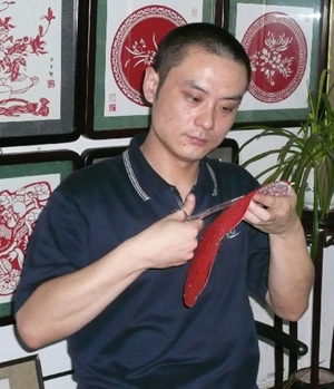 吴震,字:宗阳,号:大震,1974年出生于七朝古都开封。中国民间文艺家协会会员,河南省民间文艺家协会会员,河南省民间工艺美术大师,创作派剪纸艺术家。自幼受家人影响学习丹青,酷爱剪纸,拜师于著名剪纸艺术大师胡宝国。经过二十年勤剪不辍,不懈追求,传承剪纸绝技:剪纸不用刻刀、纸钻等特殊工具,仅用一把剪子,堪称中华剪纸艺术中的一绝。