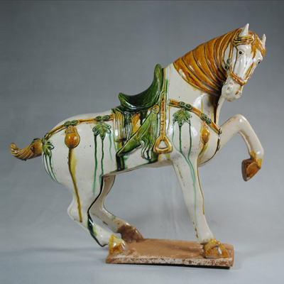 唐三彩是唐代生产的一种低温釉陶器,釉彩有黄、绿、白、褐、蓝、黑等色,而以黄、绿、白三色为主,所以人们习惯称之为“唐三彩”;因唐三彩最早、最多出土于洛阳,亦有“洛阳...[详细]