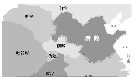 石勒建立的后赵及当时政权分立的局面(据谭其骧主编的《中国历史地图集》)