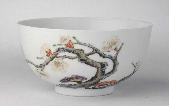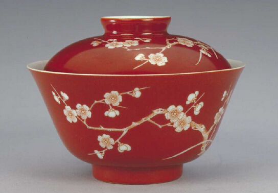 清道光珊瑚红地白梅花纹盖碗 北京故宫博物院藏