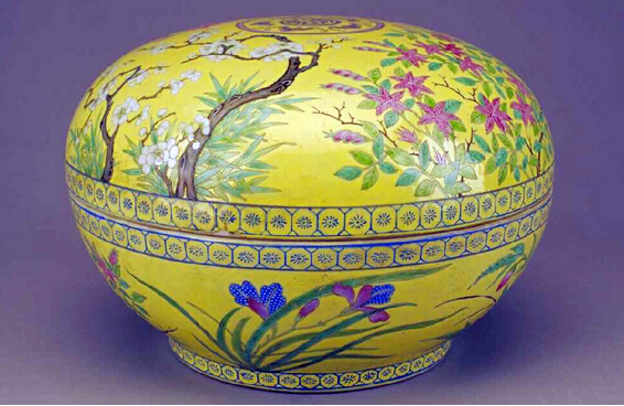 清光绪黄地粉彩花卉纹粉盒 北京故宫博物院藏