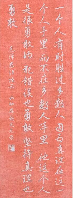 一个人有时胜过多数人,因为真理在这一个人手里,而不在多数人手里。他这个人是很勇敢的,犯错误也勇敢,坚持真理也勇敢。