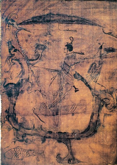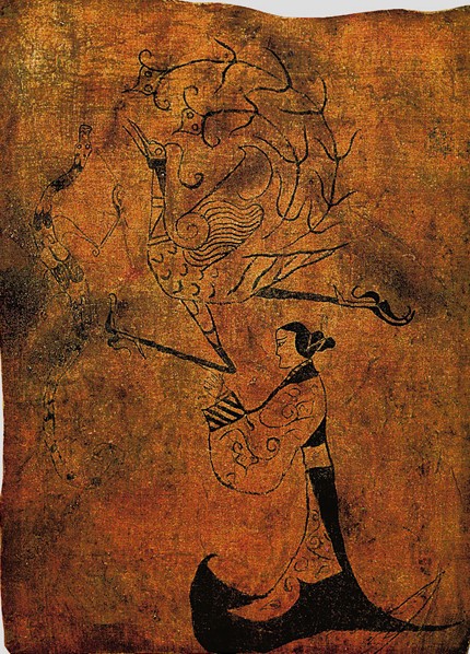 现存最古的帛画:是战国时期的《凤夔美女》、《御龙人物》。《凤夔美女》帛画,1949年在长沙楚墓中发现。画法以线条墨色为主,保留着中国绘画特有的民族风格。《御龙人物》帛画,1973年在长沙战国楚墓发现。其画法以流畅的单线条勾勒为主,以平涂和渲染的色彩为辅。再一次证明以线条为主的手法,是我国传统绘画的基础。