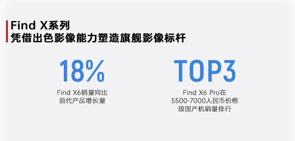 与此同时,作为双旗舰策略中的重要一环,OPPO Find X6系列的问世,再次将OPPO在影像领域的实力充分体现出来,基于“全主摄”概念打造的超光影三主摄配置,不仅实现了全焦段、全场景的高清拍摄体验;在算法优化上,不仅加入了哈苏人像系统,还在画质、色彩、光影等影像维度,融入了超光影图像引擎,让大众用户也能轻松拍出立体的大片效果。同时根据Conuterpoint公布的信息,截至今年4月底,Find X6销量同比前代增长18%,3月至5月,OPPO Find X6 Pro销量在5500元-7000元价格段位列国产机型Top3,热度颇高。