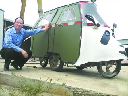仵君政向记者展示他制造的菱形汽车