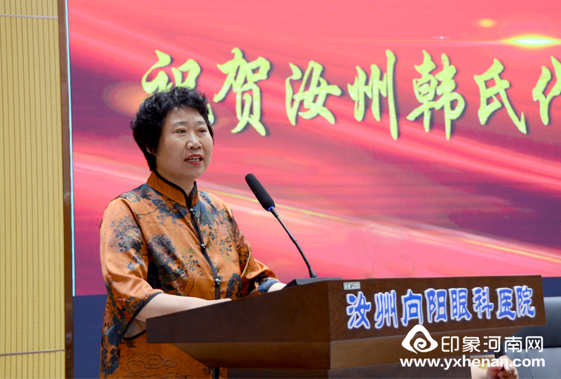 河南省非物质文化遗产项目代表性传承人、韩琴汝瓷有限公司总经理韩琴发言,并预祝大会圆满成功。