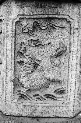 刘克胜说,石榴有多子多孙之意,而莲花则寓意连连高升。此外,在该大客厅的门扇上还有透花木雕,有狮子滚绣球、松鹤延年、福禄寿禧、麒麟送子等吉祥图案,尽显明清古建雅韵。