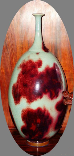 李和振,河南禹州神垕镇人,河南省工艺美术大师。他在炉钧的选料、练泥、制坯、成型、配釉、施釉、烧制方面均有独到之处。其炉钧作品线条流畅、收放得当、釉色丰富、古朴典雅,不仅传承了清代炉钧的艺术特色,而且有所创新,基本反映了当代炉钧的发展水平。他的炉钧作品因具宋钧神韵,备受人们珍视,多次获奖,被中国工艺美术馆等机构收藏 。