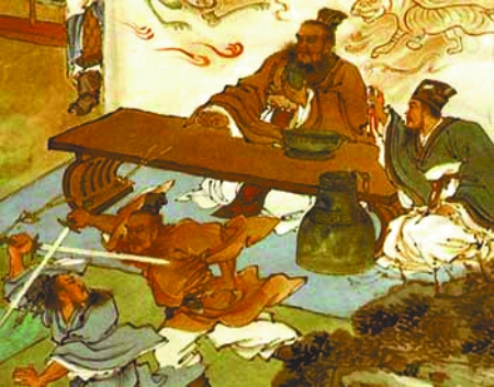 大家正饮酒高兴时,丞相田蚡起身敬酒,客人们一个个都离开席位伏在地上来接酒。轮到失去权势的魏其侯敬酒时,只有一些老朋友离开席位,其余一半的客人只是稍微欠欠身,跪在席上来接酒。灌夫看到来客接酒判若云泥的两种态度,内心很不高兴。他起身敬酒,首先敬丞相,丞相欠身跪着说:“不能喝满杯。”灌夫一听气不打一处来,讥笑着说:“将军是贵人,请干了这一杯!”丞相执意不喝。