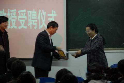 安新网讯 3月25日上午,在阵阵热烈的掌声中,市委宣传部副部长、广电局局长李俊国被安阳师范学院聘为兼职教授,安阳师院副院长杨新新当场为其颁发了聘任证书。李俊国为师院艺术系学生上了生动一课。