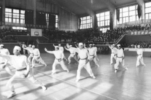 ①洛阳心意拳代表队在1998年河南省少数民族运动会上进行集体表演。 (资料图片)
