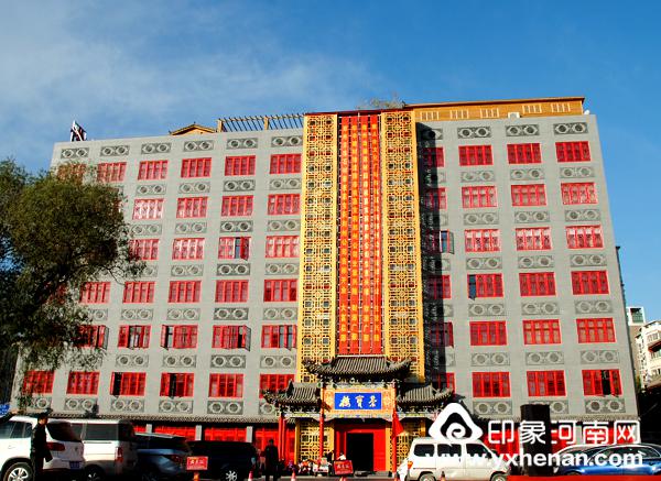 熊耳河水面漾起细小的涟漪,从容荡远。河畔的柳叶微微泛黄,婀娜多姿的柳枝轻轻摇曳。秋日中的唐人街有一种安静的美丽!广场铁栏上红白旗帜飞扬,显示着唐人街不凡的气势。进口和出口的木质牌坊左右对称,威武挺立。上面写有“郑州唐人街文化广场”的金色字样。进入广场是一片偌大的停车场,广场西侧是七层楼高的“荣宝楼”,红窗灰墙,中间是两部直升电梯,在直梯外面是金色的镂空保护装置,与大楼整体风格十分谐调,显得金碧辉煌,耀眼夺目。
