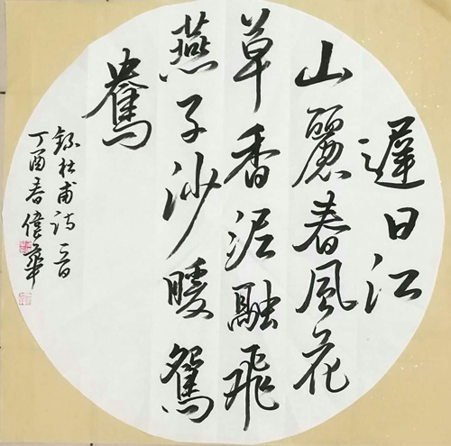 观其行书,善于中锋用笔,细腻凝练,笔走龙蛇,俯仰生姿,极富变化;线条丰盈遒美而又清淡通脱,随心所欲、恣意挥洒之中彰显出傅伟华老道的笔墨功夫。追求点画的自然灵动,顿挫起伏,富于韵律感;提按变化寓动于静,有强烈的节奏感;咫尺间,如江水般浩浩汤汤,一泻千里。其整体行书书风秀中见拙,拙中见巧,追求返璞归真的自然境界,蕴含着丰富的人生哲理。