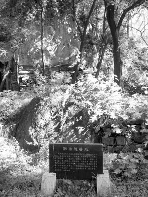 老郭讲:“2004年前,荆浩隐居处老房基还在,连院子带房子有二三百平方米,还有不少被砸碎的石碑。抗日时期,这处老房子还是完整的,是茅草做顶。再往前的历史,我也讲不清了。”