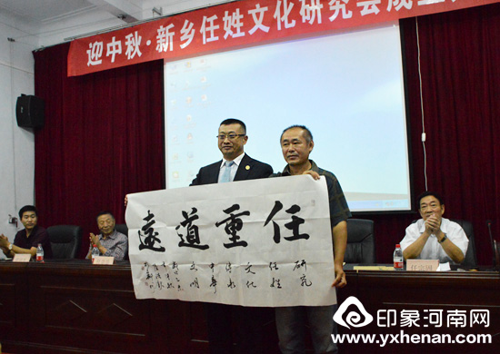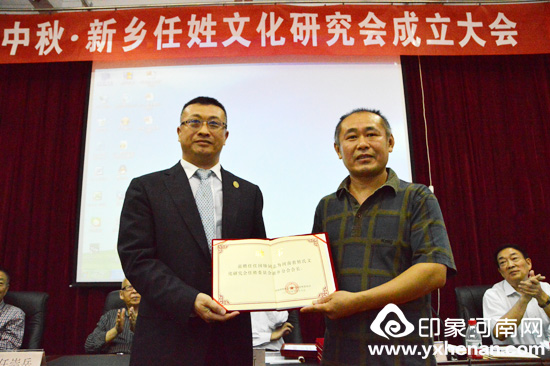 任华宣读批准文件,宣布新乡任姓文化研究会会长、副会长、秘书长聘任名单,并为新乡任姓文化研究会授牌,为新乡任姓文化研究会会长、副会长、秘书长颁发聘任证书。