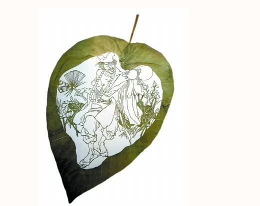 4、连缀。连缀是制作皮影的最后一道工序。一帧皮影人物是由多节部件连缀。一般二水影子上身两节,手和胳膊四节,在两节相交边缘的中间,选一个点用粗棉线连缀。这样连缀起来的影子各个关节活动自如,全身可仰可俯,手腿能伸能屈,演员操作起来得心应手。