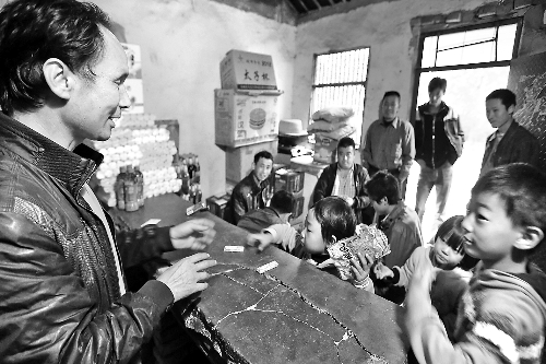 乡亲们对阮敬周都热心帮忙。只要给他送货的车一到,人们都抢着帮助卸车搬运货物,按他的要求把商品摆放到位。来阮敬周这里买东西可以赊账。他拿出一张纸,上边写得密密麻麻,都是村民自己记的购物清单,过一段时间再来结算。