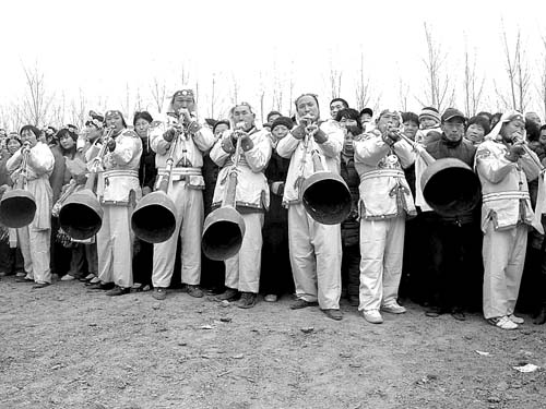 据该村的村民讲,虽然该村的庙会沿袭至今,但吹奏大喇叭的越来越少,而且没有统一的技法,失去了原有韵味,希望有关部门对这一传统艺术给予关注,进行挖掘整理,拯救这一曾经给人们带来许多欢乐的民间传统艺术。晚报记者 李玉荣【原标题:即将消失的西平罗阁大喇叭】