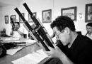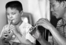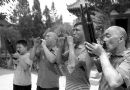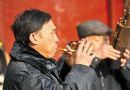 王国卿在教最小的徒弟10岁的宋星辉吹管子