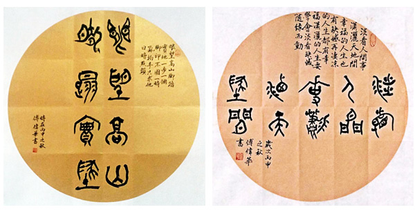 书法家张子仁曾对傅伟华说“书法是一棵参天大树,要学就从根儿上学。”这一句话对其影响颇深。在物质条件匮乏的时期,傅伟华千方百计搜集各种名帖古碑,研习临写古今历代名家的范本和典籍。2009年春,傅伟华又结识著名书法教育家王建国,得其笔法,根据自己的领悟结合毛公鼎散氏盘字型,通过巧妙构思使字体更加紧凑、灵活,通过浓、淡、干、湿的墨色变化和粗、细、方、圆的笔法变化形成了自己的书法艺术风格,并得到业内人士的认可与肯定。所书金文结构内收外放、百态争艳,极具观赏性,既不失古人神韵,又具备时代特色。所写篆书笔画圆润,结体紧凑,疏密适中,静中隐藏动感,动中蕴涵稳重,浑然天成,欣赏时让人产生一种美的愉悦的感受。