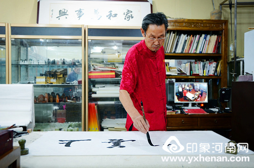 1956年8月,傅伟华出生于荥阳市高山镇许村,悠久的历史让这片土地始终保持着深厚的文化底蕴。春节期间那对联上方方正正、笔力遒劲的大字,让他年少的心对书法艺术有了懵懂的向往,而父亲每到春节便不辞辛劳到邻村“求字”的举动,让他更加坚定了练习书法的决心。从自己摸索练习到观察临摹对联,从书法作品不甚理想到广受村里人的认可,从获得著名书法家的指点到加入书协,一路走来,多少往事都沉淀于傅伟华的记忆之中。