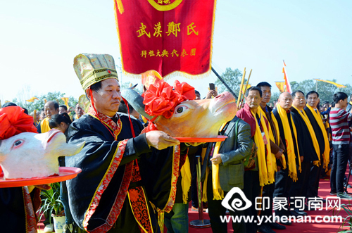 “荥阳郑氏,连续九年,成功非遗,吾族荣光,克绍其裘,奕世显扬……”,仪式中,全体宗亲代表一齐恭读拜祖文。激励人心的拜祖文在耳边回响,一千二百万郑氏子孙一定会用智慧和力量使郑文化的发展再创辉煌。