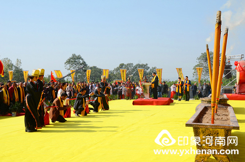 击鼓鸣金,通神告祖,献三牲、供五谷,奏乐升旗,敬献花篮,拱手上香,献爵敬祖,恭颂拜祖文,乐舞敬拜,施礼敬拜,祈福中华等仪式依次庄重进行。