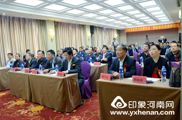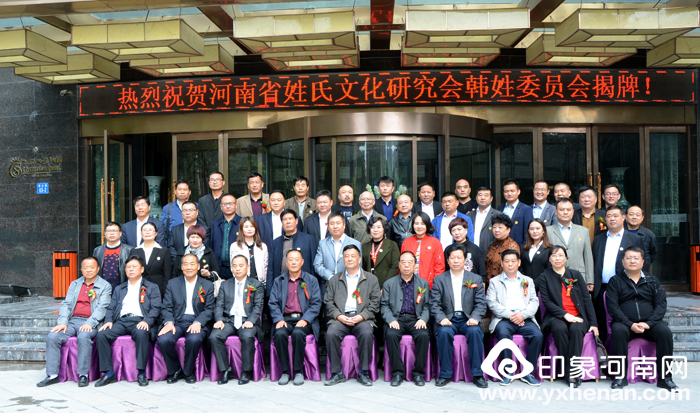10月12日上午,河南省姓氏文化研究会韩姓委员会揭牌仪式在郑州市举行。河南省姓氏文化研究会副会长石小生、秘书长李立新,河南省姓氏文化研究会韩姓委员会会长韩跃军、常务副会长韩建立、副会长韩亚南、秘书长韩晓阳等领导、嘉宾以及来自各地的韩姓代表五十余人到会参加。