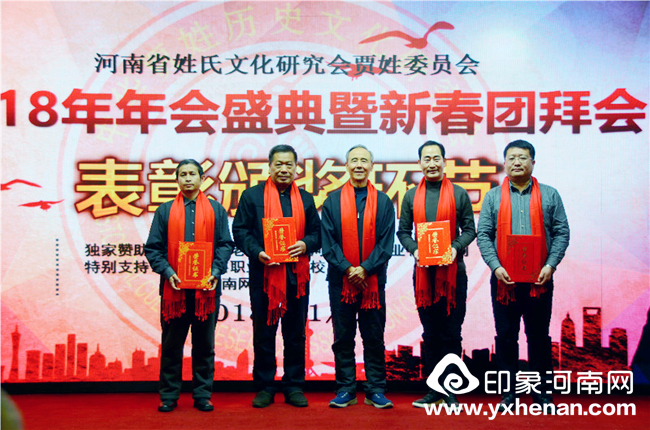 在表彰和颁奖环节,还为年度文化专家、年度特别贡献奖、年度贾姓文化传承人、年度贾姓家谱文化传承人、年度贾姓经济精英、年度贾姓书画家、年度贾姓艺术家、年度优秀群管理员、年度《贾姓文化》优秀特邀编委、年度理事会工作模范、年度理事会工作标兵进行了表彰。