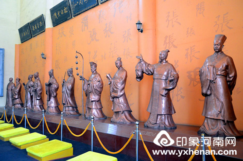中华张姓,族史辉煌。自始祖挥公,观弧制矢,开启上古文明新篇章。其后裔仰祖之德,承祖之志,人才辈出,灿若繁星。挥公大殿两侧树立的历代张姓杰出历史名人塑像,庄重肃立,记录的就是张姓文化的发展历史。他们演绎的一个个传奇故事,一幕幕历史大剧,于浩瀚的历史长河中,留下光辉灿烂的篇章。