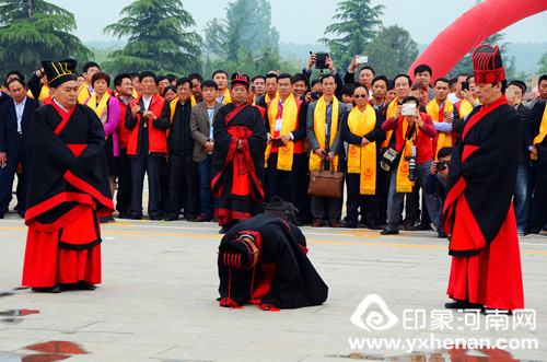 “周礼敬拜”是由中原张良历史文化研究会所行的周礼祭祖仪式,雍容华贵,庄重古朴,展现的是家祭礼的核心部分。包括进馔、三献、叩拜等程序,表达了中华民族慎终追远的传统美德。