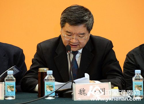 魏一明在致辞讲到:“我谨代表河南省姓氏文化研究会和河南省社科院向与会的嘉宾致最热烈的欢迎和最诚挚的祝福。”他说,河南地处中原,中华民族的先民很早就在这里繁衍生息,创造了辉煌灿烂的中原文化。中华文明的曙光首先在这里闪现,北宋以前中原一直是中国的政治、经济、文化中心,中原不仅是中华文明的文明之源,也是中华民族的血脉之根。中原文化最显著的特点就是根源性,文献中被称为三皇五帝的十二位先人,他们都被视为中华民族的人文始祖,大多出自中原或主要活动于中原。河南是中华姓氏资源的第一大省,张姓是当今中华的第三大姓,是中华民族人文始祖黄帝的直系后裔,历史悠久,文化灿烂。张姓不仅发源于今河南濮阳市,在河南也涌现出了一批在中华文明历史上熠熠生辉的历史人物,“汉初三杰”之一的张良就是具有影响力的杰出人物代表。魏一明指出,姓氏根亲文化是中华优秀传统文化的重要组成部分,也是河南特有的文化资源,中华民族就像一棵参天大树,他的树根根植于中原大地,中原根深则华夏根茂。河南通过对姓氏根亲文化的研究,从宣传、发扬、光大,达到培根、养根的目的,把中华民族的文脉、血脉护养好。魏一明指出,姓氏根亲文化已经得到了省委省政府的高度重视。在新的形势下,召开“张良文化国际高峰论坛”具有特别重要的意义。