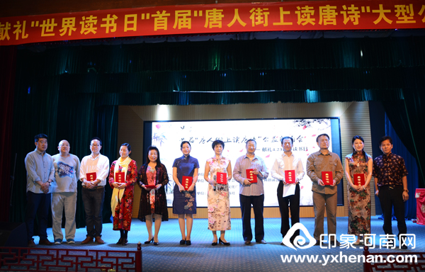 活动最后,由河南省阅读学会、河南省中外经典朗诵艺术团、郑州市唐人街文化广场、郑州市金水区未来路办事处等单位代表为在2017年“世界读书日”积极参加此次公益活动,表现突出,德艺双馨的参加者颁发了纪念证书。