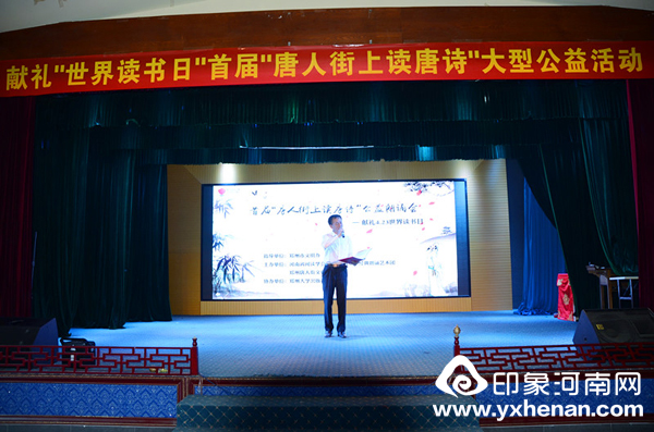 1996年联合国教科文组织宣布每年的4月23日为“世界读书日”。“世界读书日”全称为“世界图书与版权日”,设立目的是推动更多的人去阅读和写作,希望所有人都能尊重和感谢为人类文明做出过巨大贡献的文学、文化、科学、思想大师们,保护知识产权。每年的这一天,世界一百多个国家都会举办各种各样的庆祝和图书宣传活动。今年已经是第22年了。在郑州市唐人街文化广场举办的首届“唐人街上读唐诗”大型公益活动为献礼“世界读书日”进行了精彩纷呈的唐诗朗诵和舞蹈节目表演。