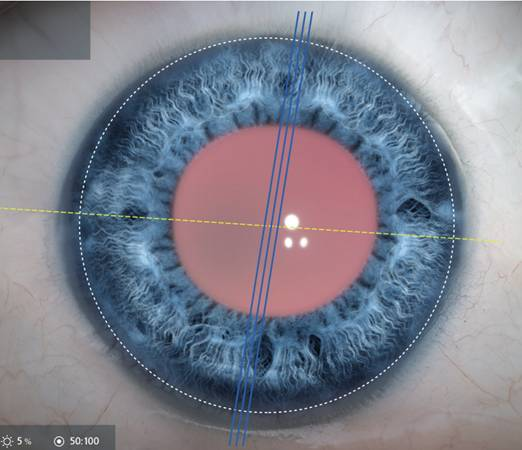 实时导航技术对于ICL植入手术意义重大,特别是散光轴向引导。ICL植入术有超过一半的患者需要植入TICL(带散光)的晶体,手术中需要精准的晶体轴向调整。没有导航的情况下,医生需要提前在眼睛上做好标记,手动调整晶体位置,实时导航技术的应用,真正实现了无创标记,数字引导,且可以精确至1°,准确的导航让医生不会错过任何一个细节,手术操作更加精准,术后效果更完美。