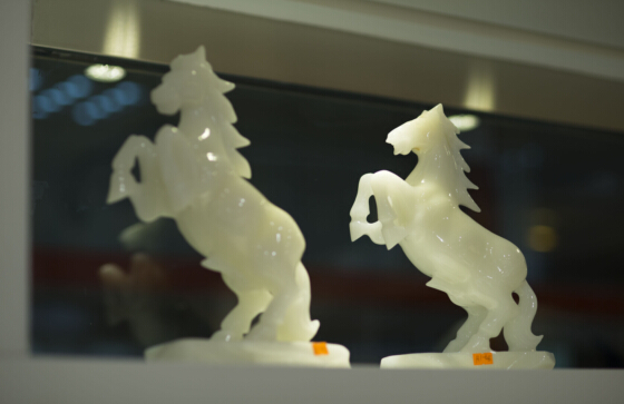在这里,汇聚了各种珍稀玉器:形似松球、色近松绿的绿松石,色泽清新美丽;质地坚硬种类多样的翡翠,气质出众;暖色调的黄玉,柔和温润、细腻柔美;优质的羊脂白玉晶莹洁白,细腻光亮……感觉真正是走进了一个玉器的世界,让人惊叹。
