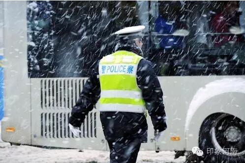 繁忙而又略显拥挤的道路上,恪尽职守的警察们站在雪地中在各个路口指挥交通。不时有车辆陷在雪里打滑,他们毫不犹豫帮忙推车。雪花早已在他们的头上、身上积了一层,他们却毫不在意,一直忙碌着。黄叶纷飞,不忍他们的孤独,落在他们的脚下,与他们共同守候在那里。路上的车辆小心翼翼,缓缓前进。行人或疾步走过,或缓步慢行。公交站台,人们在站台耐心等待公交车的到来。有的上班族干脆地撑起了伞,直接走路上班,道路两侧,他们的身影绵延在街道上。