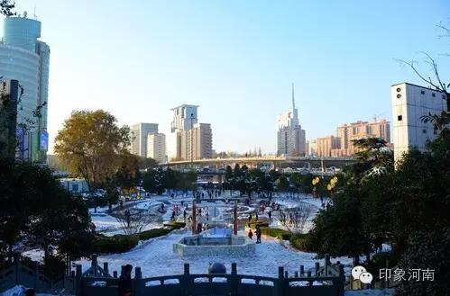 公园里,树木的清新芬芳萦绕在空气中,令人沉醉。站在紫荆山上,看着立交桥上来往的车辆,与桥下公园里凝立带雪的青松融成一个和谐的画面。