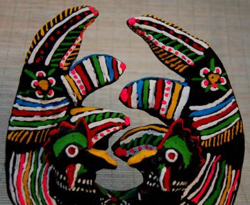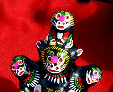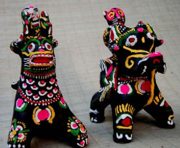 “淮阳泥泥狗”是河南省淮阳县的特产,是豫东一带妇孺皆知的泥塑艺术品。是淮阳太昊陵“人祖会”中泥玩具总称,是一种原始图腾文化下产生的一种独特的民间艺术,又称“陵狗”或“灵狗”。其表现的题材十分广泛,天上的飞禽,地上的走兽无所不有,造型虚幻、神秘。林林总总的怪异形体中有九头鸟、人头狗、人面鱼、猴头燕 蟾蜍、晰蜴、豆虫、蝎子等等,还有各种抽象、变形的多种怪兽复合体共约200余种。“泥泥狗”因其造型古拙、荒诞,在众多民间艺术具有独特的魅力。