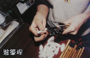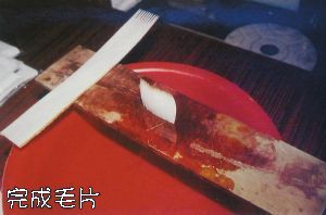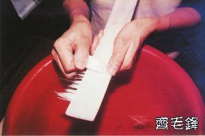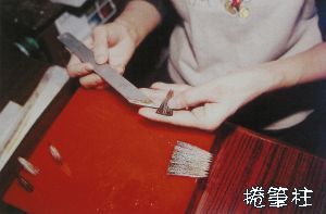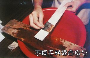 各类毛笔的制作都须经过选料、除脂、配料、梳洗、顿押、卷头、拣齐、扎头、装头、干修、粘锋、刻字、挂绳等工序。概括起来则俗称“水盆”(在水盆中操作的工序)和“干活”(装头、干修等无水工序)两大工序。水盆工序是决定毛笔用途和质量的关键,笔头要求达到尖、齐、圆、健(史称四德)。尖系指笔锋要尖如锥状,利于钩捺;齐指笔锋毛铺开后,锋毛平齐,利于吐墨均匀;圆指笔头圆柱体圆润饱满,覆盖毛均匀,书写流利而不开叉;健指笔锋在书写绘画时有弹性,能显现笔力。