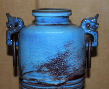 钧瓷烧制技艺,第二批国家级非物质文化遗产名录项目。钧瓷,起源于河南禹州市,因禹州市有钧台夏启举行开国庆典之地而得名,起始于唐朝,至宋代达到鼎盛时期,为我国宋代五大名瓷之一,与汝、官、哥、定瓷并驾齐驱、钧窑,又以钧瓷“入窑一色,出窑万彩”的窑变艺术魅力成为诸窑之冠。钧瓷生产需要经过加工、造型、制模、成形、素烧、上釉、检选八大工序。钧瓷造型新颖大气、釉色浑厚凝重、窑变图画精奇,在不同光线、不同角度下观赏各有情趣、耐人寻味。